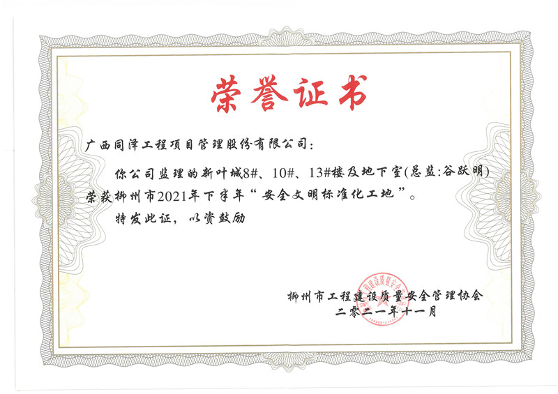 喜報頻傳 | 同澤股份多個項目榮獲“安全文明標準化工地”稱號